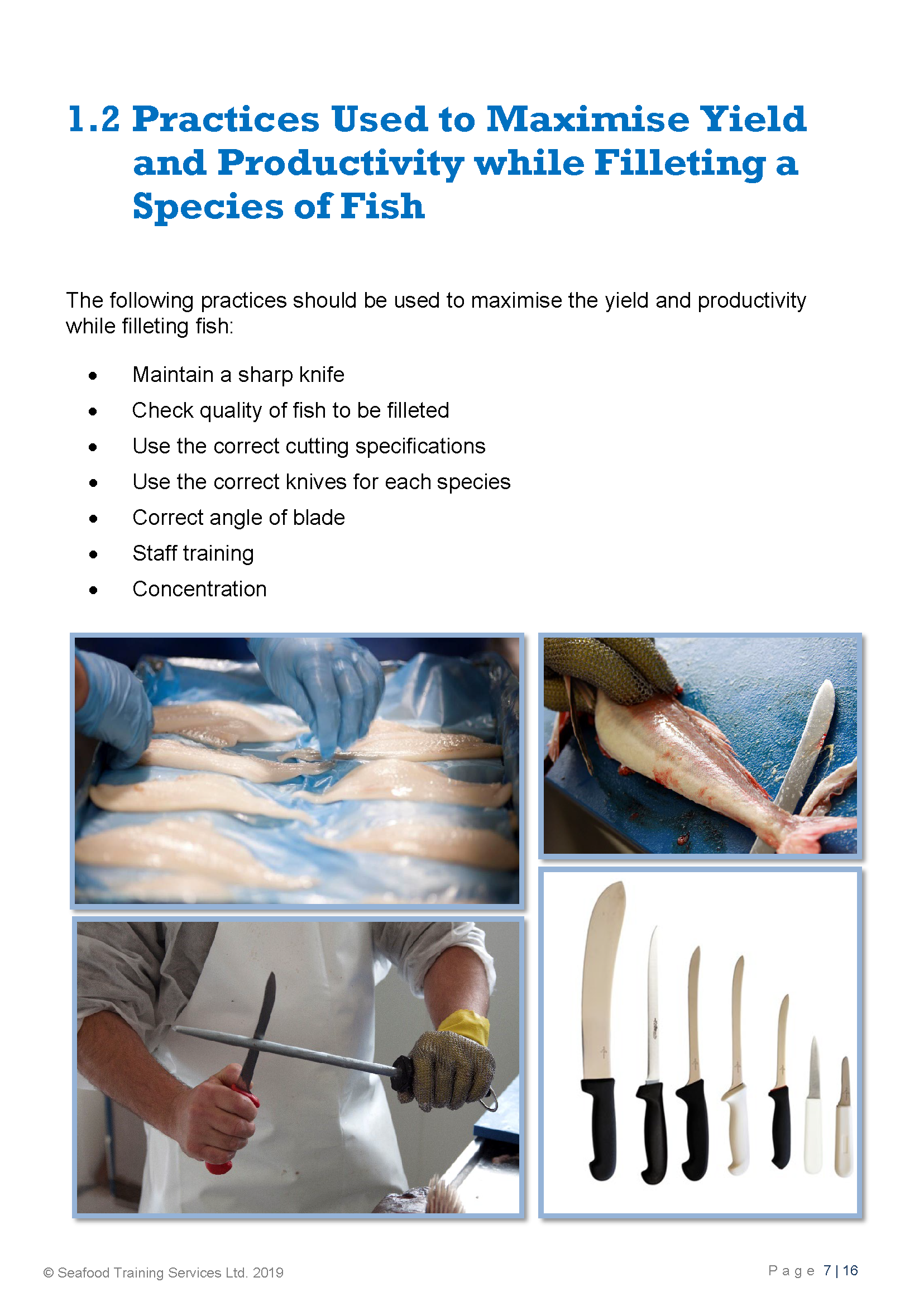 People credited with this unit standard are able to demonstrate knowledge of the requirements for filleting a species of fish; and fillet a species of fish, at a commercial rate.