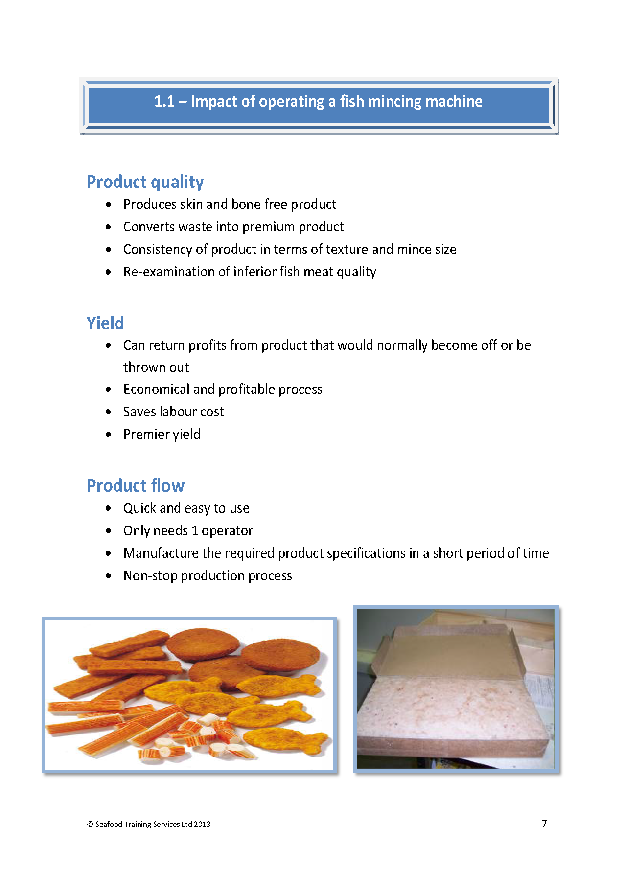 People credited with this unit standard are able to demonstrate knowledge of the impact the operational settings of a fish mincing machine have on a seafood product, and the set up, shut down, cleaning and maintenance of, a fish mincing machine.