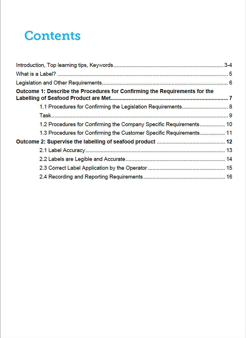 People credited with this unit standard are able to describe the procedures for confirming the requirements for the labelling of seafood product are met; and supervise the labelling of seafood product.