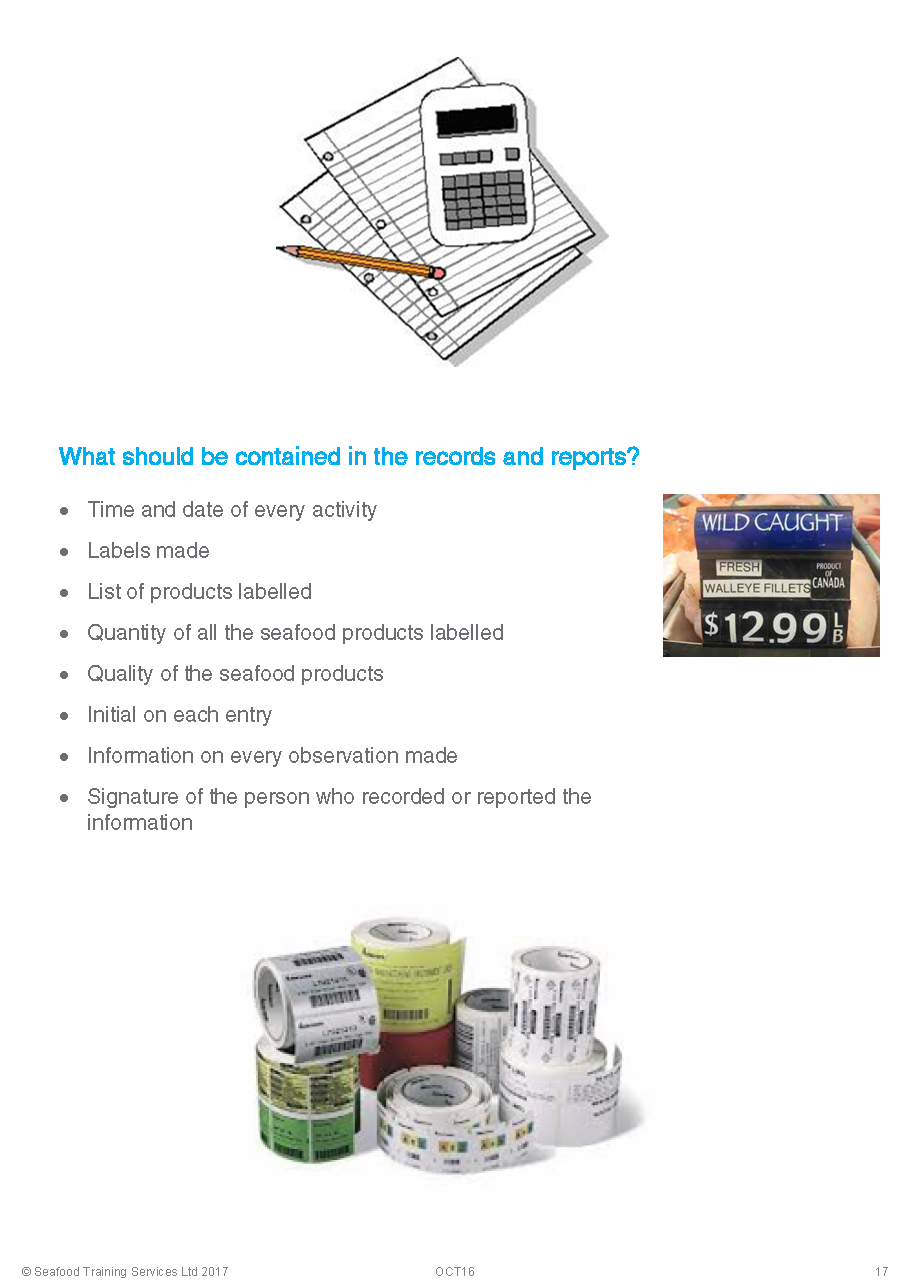 Supervise the labelling of seafood product