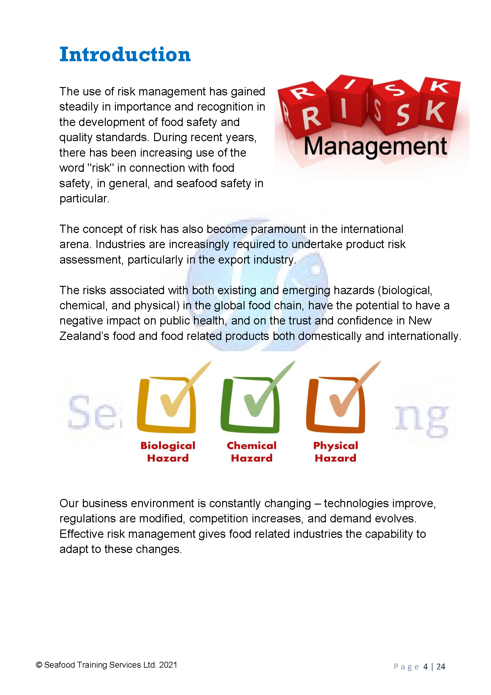 A Risk Management Programme for a seafood operation