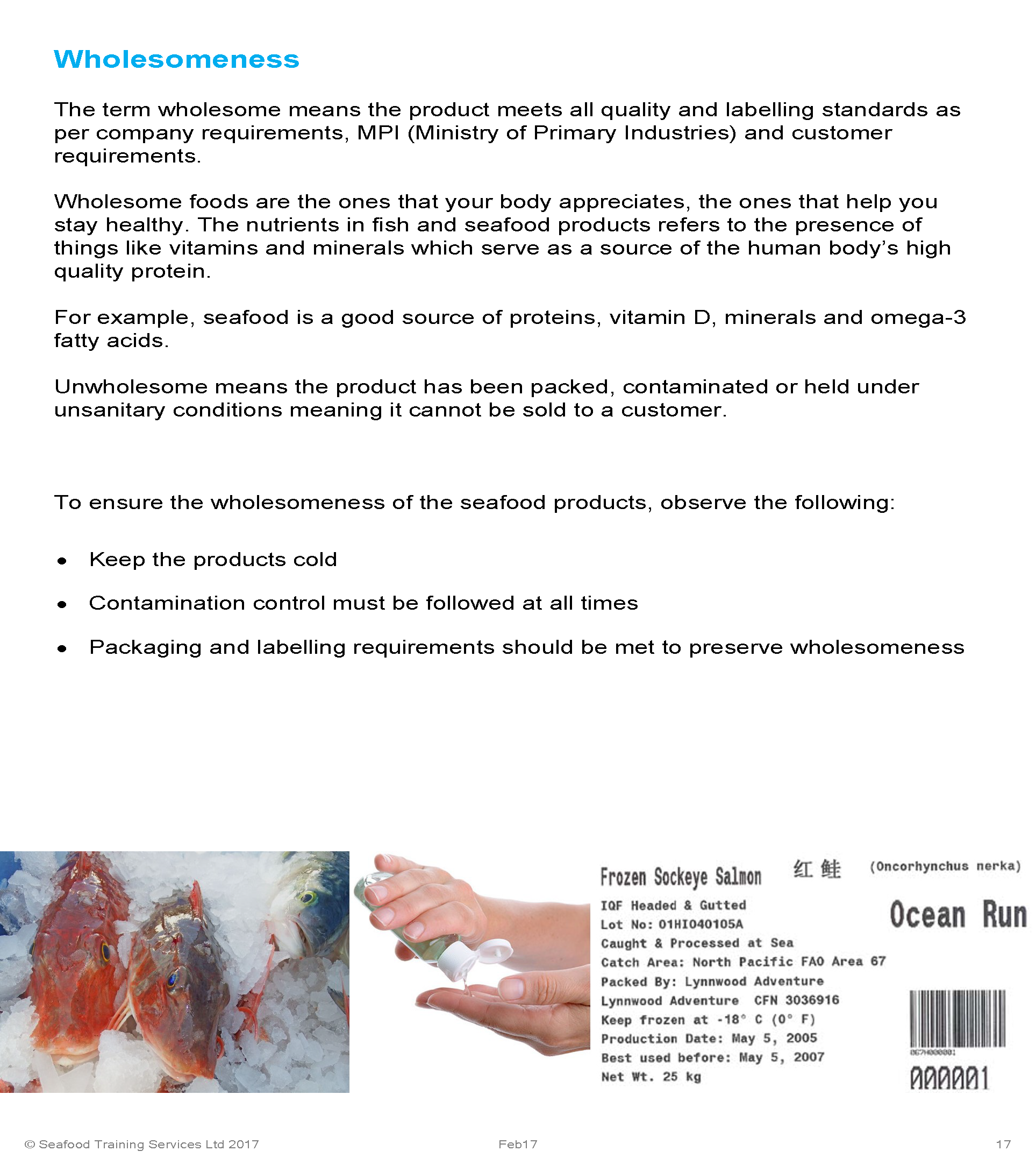 People credited with this unit standard are able to demonstrate knowledge of seafood product quality checks in a seafood operation, carry out seafood product quality checks, and take action in response to any findings of non-compliance in a seafood operation.